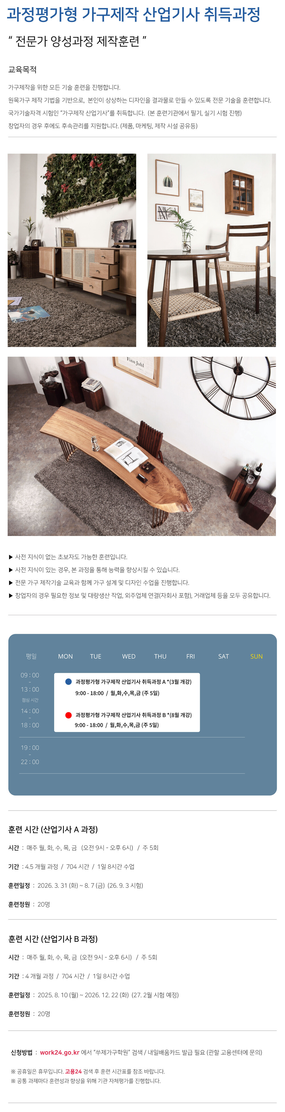 2. 과정평가형 가구제작산업기사 취득과정 b (8월 10일 - 12월 22일) (4개월)